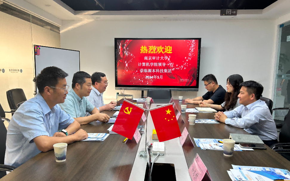 为贯彻落实党中央、国务院关于高校毕业生就业工作的决策部署,全力促进毕业生高质量就业和产教融合开展,2024年5月15日下午,南京审计大学计算机学院副院长郭红建带领计算机系主任崔应留、信管系主任姚兴山以及吕从东老师来到江苏艾弗森贝博ballbet官网科技集团召开“访企拓岗产教融合”专项行动。
