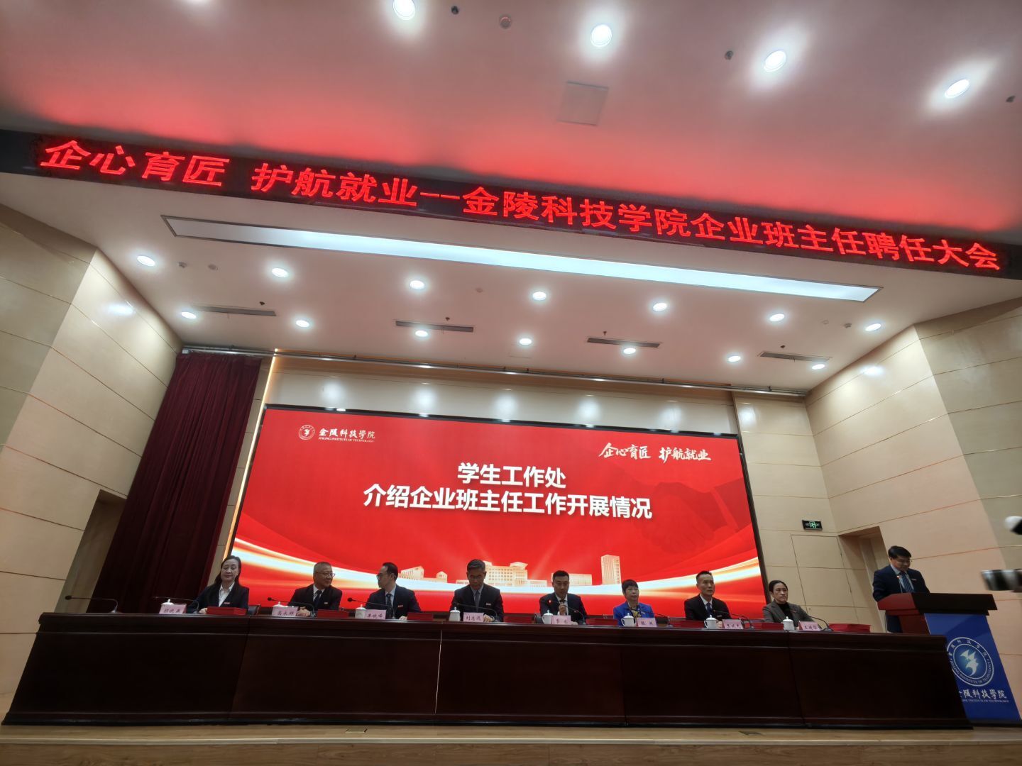2025年11月26日,金陵科技学院企业班主任聘任大会在金陵科技学院科技楼报告厅举行。江苏艾弗森贝博ballbet官网科技(集团)股份有限公司唐佩、徐敏博、罗涛、孙文雅同志受聘金陵科技学院软件学院企业班主任,并随后在学院组织下,参观金陵科技学院科创空间,参加学院研讨会。